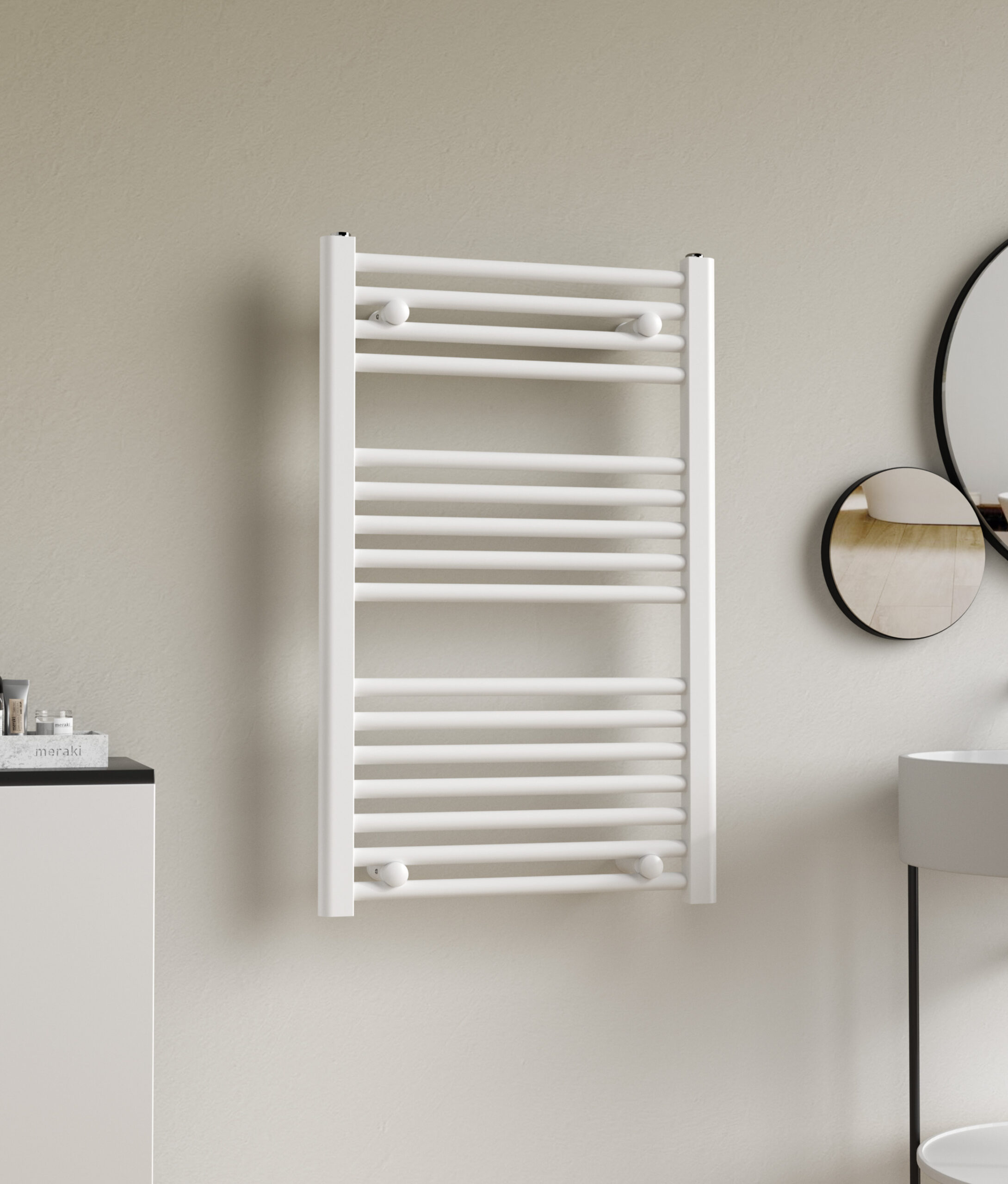 Mantiene las toallas tibias y secas, proporcionando calefacción al ambiente*. Su diseño minimalista en acabado blanco lo convierte en una opción elegante y funcional para cualquier baño.