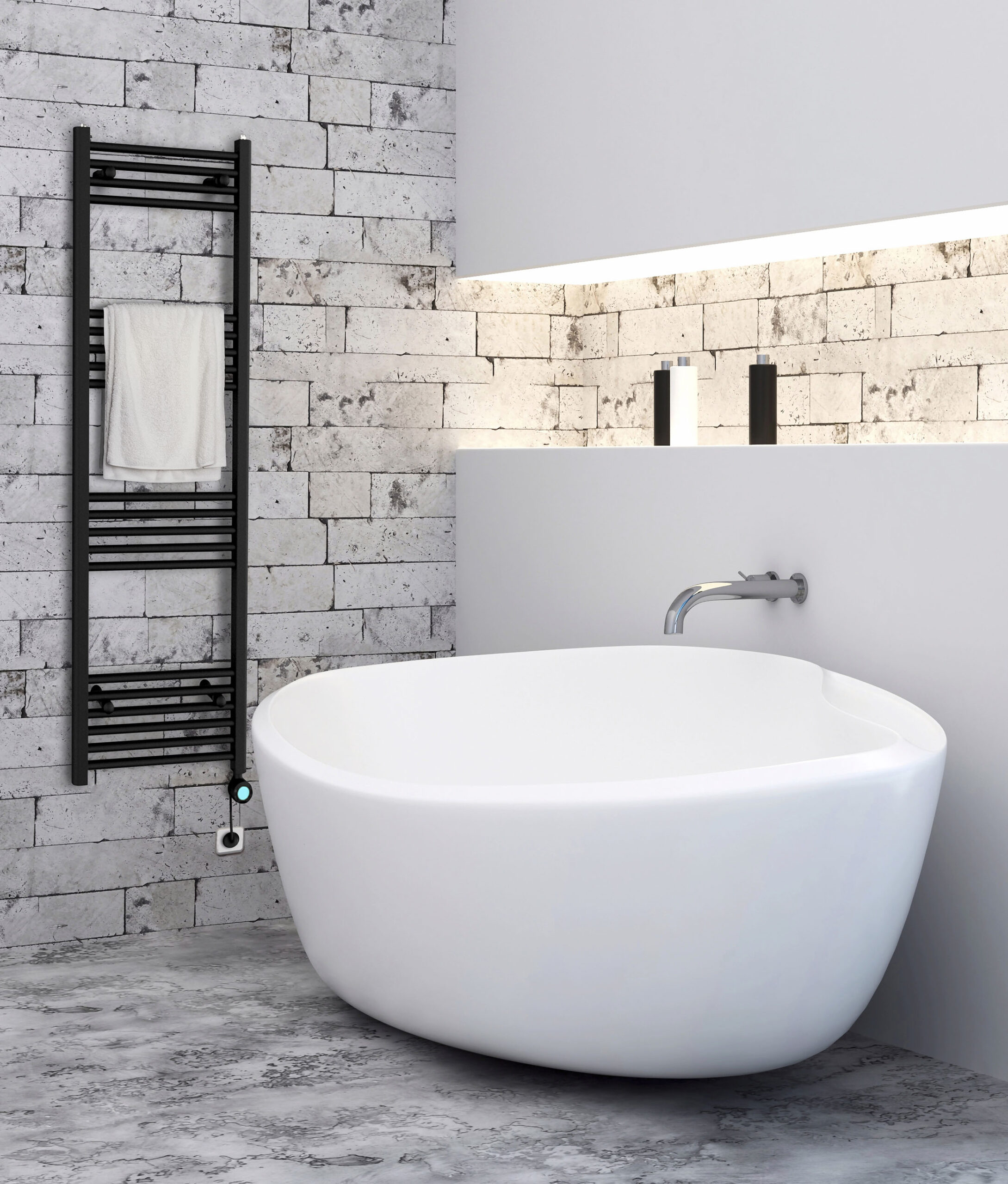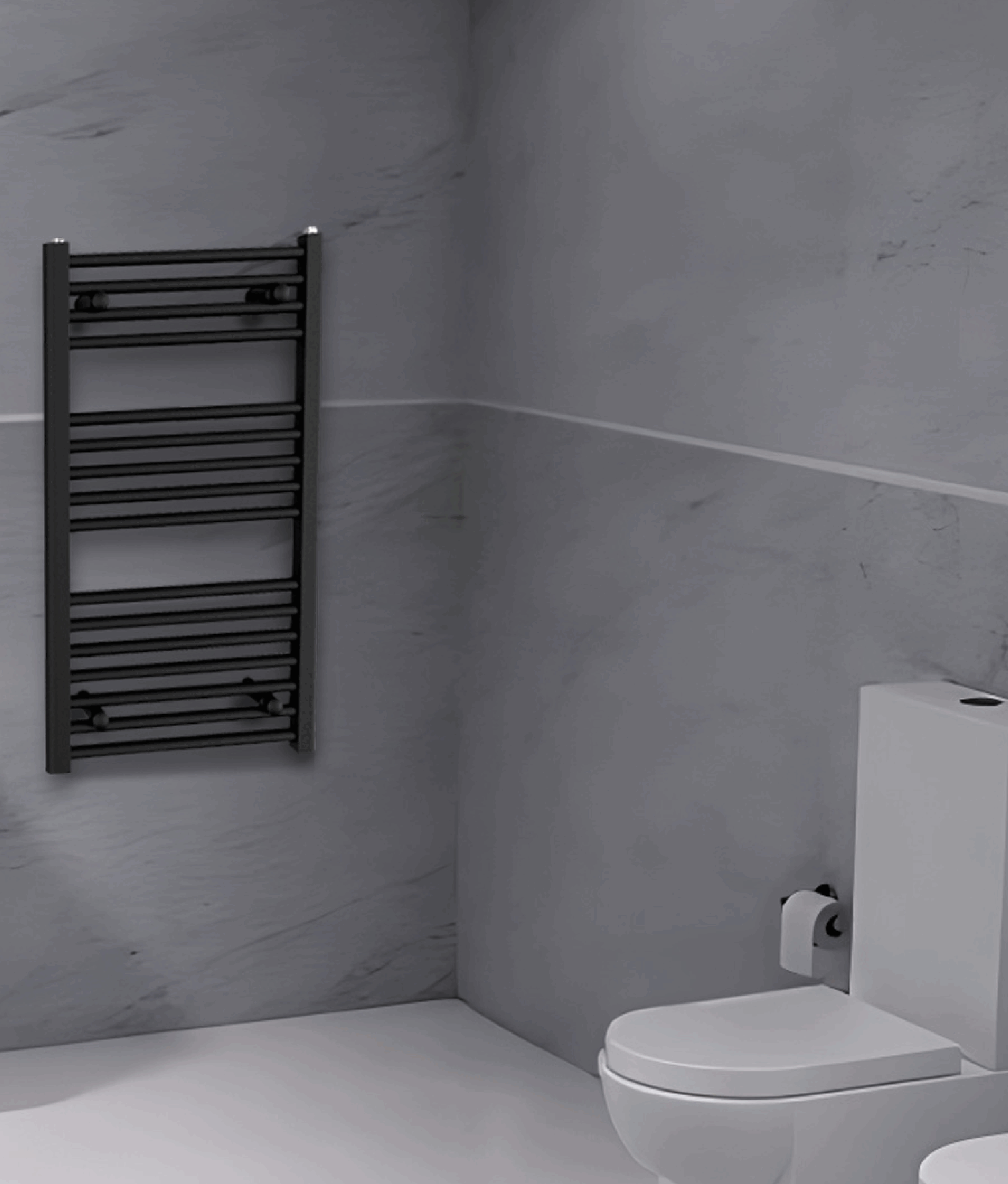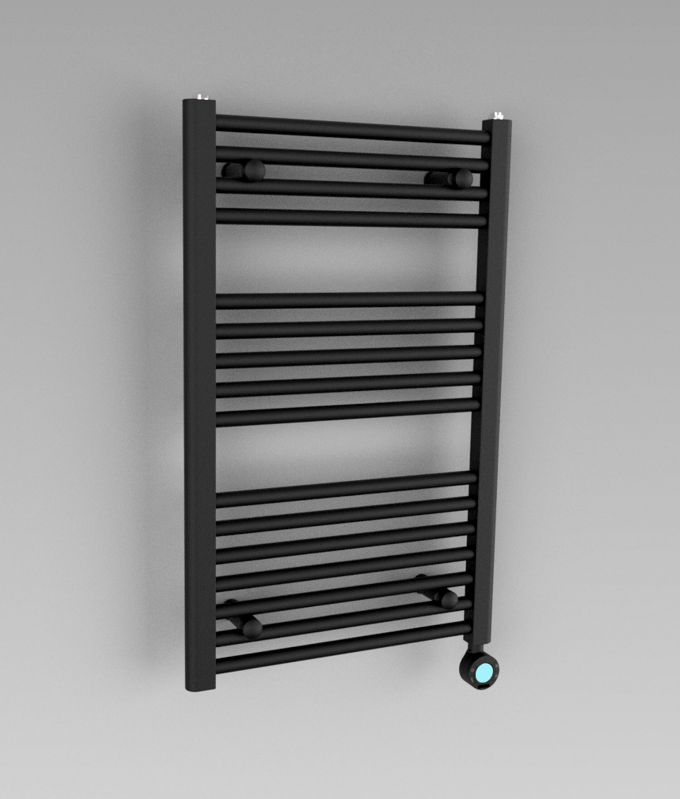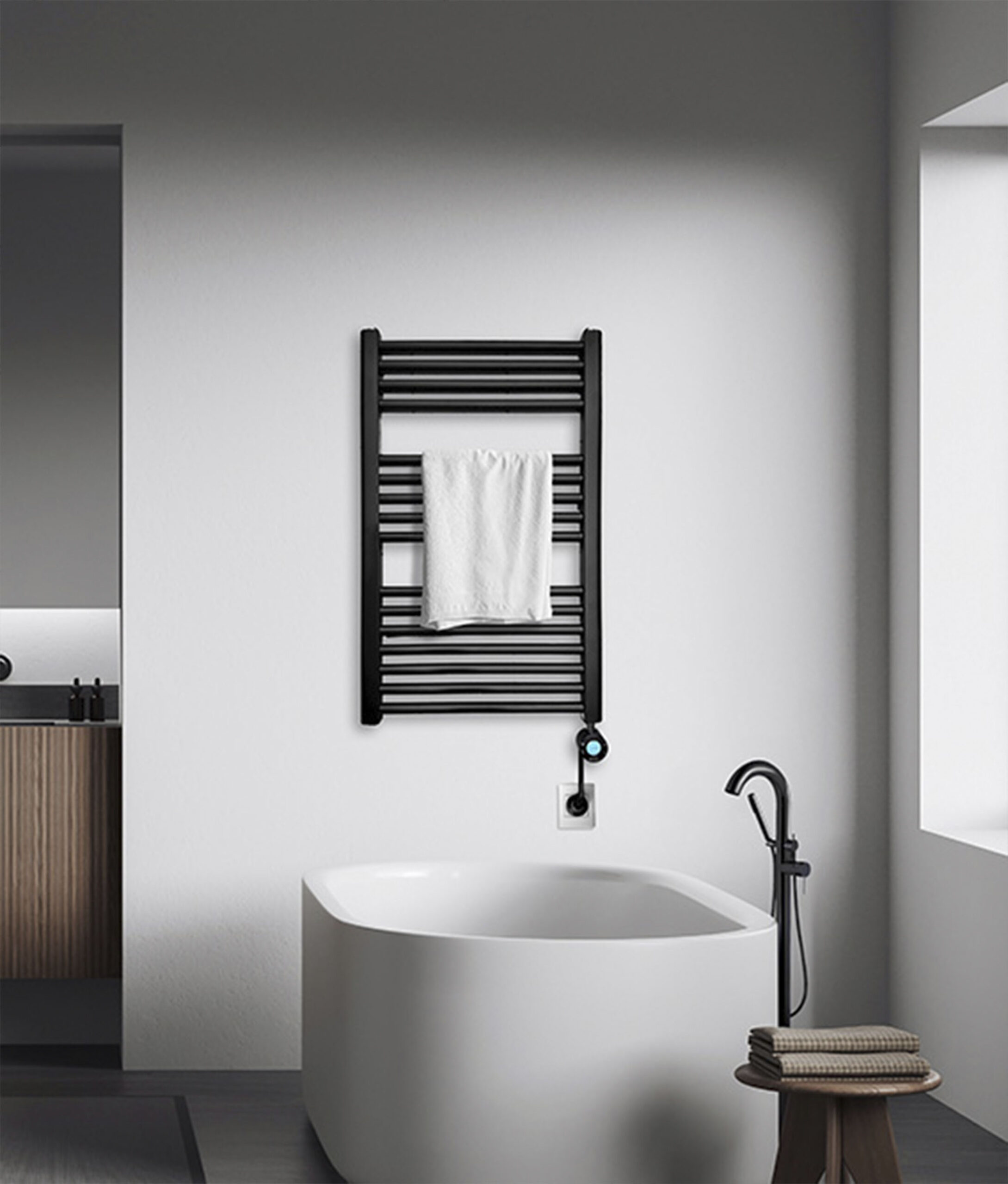 Mantiene las toallas tibias y secas, proporcionando calefacción al ambiente*. Se conecta al circuito de radiadores, quedando totalmente integrado en el sistema de calefacción central de la vivienda. Se presenta en color negro, ofreciendo elegancia y estilo al ambiente.